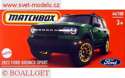 Parametry produktu AUTÍČKO MATCHBOX DRIVE YOUR ADVENTURE HVP79 FORD BRONCO SPORT 2022 Matchbox MA-HVP79
