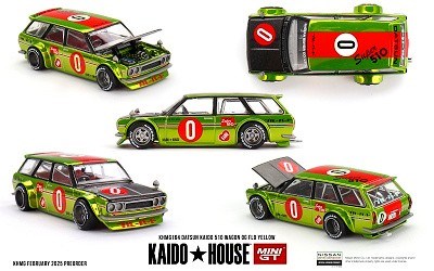 Datsun KAIDO 510 Wagon OG Flo Yellow v měřítku 1:64 (kód KHMG164) je jedinečný sběratelský model, který spojuje ikonický design klasického japonského vozu s výrazným tuningovým stylem známým jako Kaido Racer. Tento model představuje nejen poctu legendárnímu Datsunu 510, ale také umělecké ztvárnění kultury JDM, která od 70. let formuje automobilovou scénu v Japonsku i po celém světě. Od svého debutu se Datsun 510 stal symbolem spolehlivosti, jednoduché techniky a sportovního ducha – a v této úpravě získává zcela nový, extravagantní rozměr.