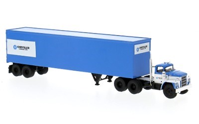 Dodge LCF (Low Cab Forward) CT 900 byl uveden na trh v roce 1960 a díky nízké kabině, snadné manévrovatelnosti a spolehlivosti se stal velmi populárním. Skříňový návěs Chrysler byl typicky používán pro přepravu zboží na dlouhé vzdálenosti a doplňoval schopnosti tahače LCF CT 900, čímž vznikla efektivní souprava pro dálkovou logistiku. Tento typ vozidel byl symbolem amerického nákladního průmyslu a reprezentoval robustní konstrukci a vysokou odolnost typickou pro šedesátá léta.