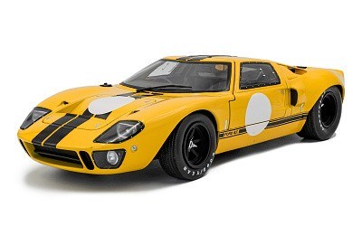 Model SOLIDO 1803011 představuje legendární Ford GT40 Mk.1 1968 v výrazné žluté barvě, věrně ztvárněný v měřítk