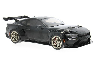 Design GTD vychází ze siluet tradičního Mustangu, ale je zřetelně agresivnější, aerodynamicky propracovaný a zaměřený na funkčnost. Vůz má výrazné karbonové panely karoserie, široké blatníky, obrovské přítlačné křídlo a aktivní aerodynamické prvky. V kombinaci s nízkým těžištěm, adaptivním podvozkem a závodně laděnými pneumatikami vytváří neuvěřitelně působivý celek. Právě tyto detaily dokázala továrna IXO ve svém modelu v měřítku 1:18 dokonale zachytit. Karoserie modelu má precizní povrchovou úpravu s lesklým černým lakem, který podtrhuje dravost vozu, a jemně zvýrazněné linie kapoty, blatníků i prahů, čímž dokonale vyniká kontrast světla a stínu na jeho masivní siluetě.