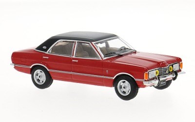 Model IXO MODELS CLC593 Ford Taunus GXL 1973 red v měřítku 1:43 představuje dokonale zpracovanou miniaturu elegantního vozu střední třídy, který v 70. letech ztělesň