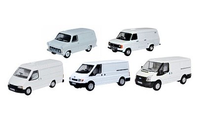 Tato sada v měřítku 1:76 od Oxfordu sleduje cestu Fordu Transit časem od jeho uvedení na trh v roce 1965 až do současnosti. Jeho schopnost držet krok s konkurencí malých u