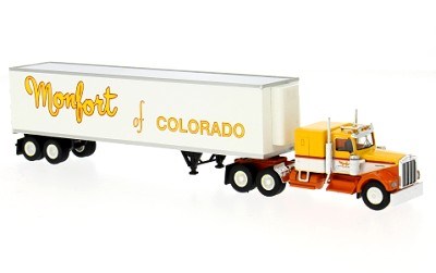 Model W900 od Kenworthu je jeden z nejdelších a nejvíce ceněných tahačů v historii USA. Proslavil se svou spolehlivostí a prostorností kabiny, které ocenili řidiči na dlouhých trasách. Společnost Monfort byla významným hráčem v americké logistice, známá především přepravou masa a chlazených produktů. Tento model v sobě spojuje technickou legendu a historicky významnou dopravní firmu, což dodává celému setu velkou sběratelskou hodnotu. Tahače Kenworth W900 z konce 70. let se vyznačovaly silným motorem a robustním, ale zároveň elegantním designem.