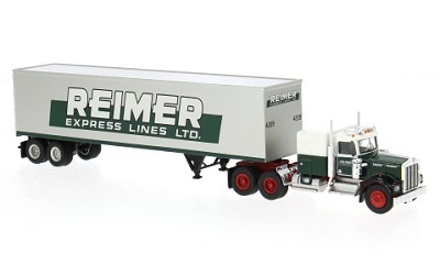 Model tahače Kenworth W900 z roku 1977 se skříňovým návěsem s logem Reimer představuje vysoce realistickou sběratelskou m