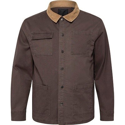 Pánská bunda 53321 tmavě hnědá - nadměrná velikost. Zapínání na druky. Levá a pravá našitá kapsa. Levá náprsní kapsa, pravá náprsní kapsa s klopou. Světle hnědý manchesterový límec. Rukávy ukončeny manžetou na druk. Uvnitř podšívka, levá náprsní kapsa