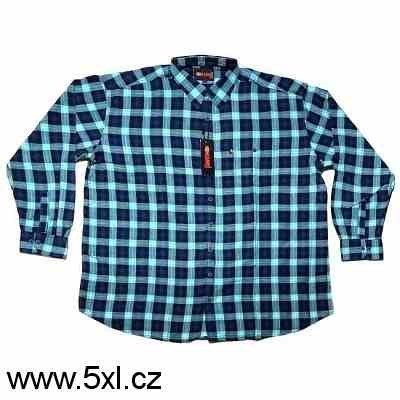 Pánská košile flanelová modro - zelená dlouhý rukáv 4XL - 6XL v nadměrných velikostech. Zapínání na knoflíky. Levá náprsní kapsa na knoflík.