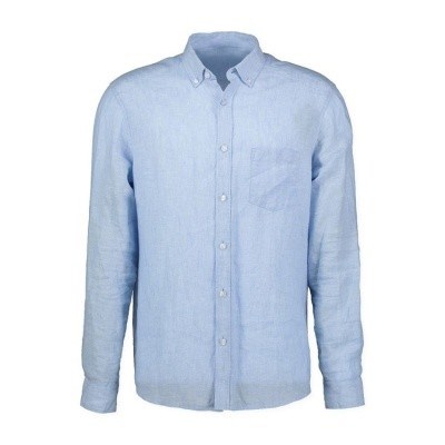 Lněná světle modrá košile s dlouhým rukávem. Levá náprsní kapsa. Model navržený speciálně pro potřeby mužů vyžadujících nadstandardní velikost a maximální volnost pohybu.
