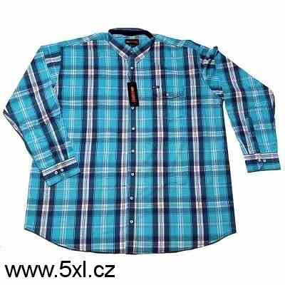 Pánská plátěná košile tyrkysová károvaná dlouhý rukáv 4XL - 12XL v nadměrných velikostech. Zapínání na knoflíky. Levá náprsní kapsa s klopou na knoflík.L