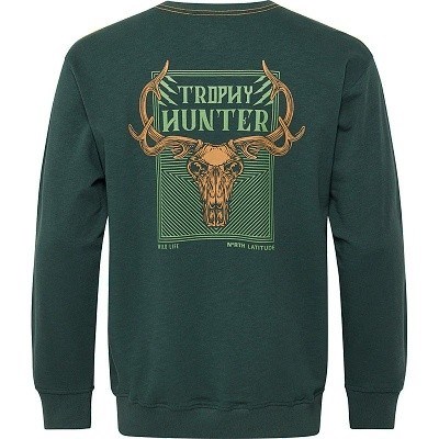 Pánská mikina NORTH 53125 tmavě zelená 5XL - 8XL -nadměrná velikost. Konec rukávů, kolem krku a spodní část pružný lem. Na zádech potisk.