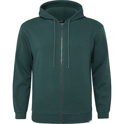 Nadměrná pánská mikina NORTH 53317 s kapucí tmavě zelená v nadměrné velikosti 5XL, 6XL, 7XL, 8XL. Zapínání na zip. Levá a pravá kapsa. Spodní část a konec rukávů pružný lem. Tenká.