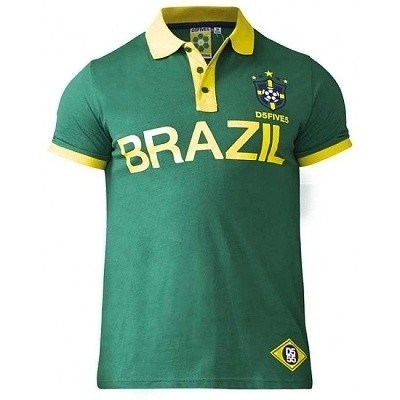 Pánská polokošile KS16482 zeleno žlutá krátký rukáv - tričko s límečkem - nadměrná velikost.Lem rukávů, klopa a límec v barvě žluté. Vepředu nápis BRAZIL. Vzadu velká číslo 11.