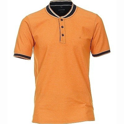 Pánské tričko oranžové na knoflíčky Casa Moda 4XL - 6XL krátký rukáv. Zapínání na 3 knoflíčky. Kulatý výstřih. Pružné.