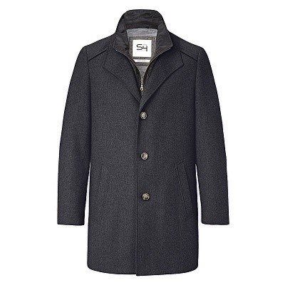 Pánský zimní kabát 74299 S4 vlněný tmavě modrý - nadměrná velikost. Zapínání na knoflíky. Pod tímto zapínáním druhé zapínání na zip . Toto druhé zapínání spojeno s druhým límcem. Druhé zapínání včetně druhého límce lze díky zipu odepnout a vyndat. Levá a pravá kapsa. Uvnitř levá a pravá náprsní kapsa na zip.
