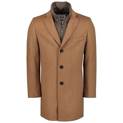Pánský zimní kabát 74381 S4 vlněný hnědý - nadměrná velikost. Zapínání na knoflíky, pod mimi druhé zapínání na zip a límec stojáček. Toto druhé zapínání se stojáčkem je možno díky zipu odstranit. Levá a pravá kapsa. Levá náprsní kapsa. Uvnitř levá a pravá náprsní kapsa na zip.