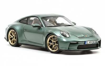 NOREV přináší tuto miniaturu s mimořádnou péčí o detaily. Kovová karoserie je precizně lakována do elegantního zeleného odstínu Malachite Green, který pod světlem ožívá s hloubkou a jemným metalickým efektem. Linie karoserie jsou přesně vystiženy, od nízkého aerodynamického čela až po zadní část, kterou odlišuje absence výrazného křídla – typický znak verze Touring. Tento decentní vzhled je však doplněn sportovními detaily, jako jsou větrací otvory v kapotě, černé lišty, precizní světla a realisticky ztvárněné logo Porsche na zádi.