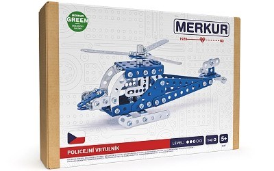 Stavebnice MERKUR 5547 Policejní vrtulník představuje kvalitní českou kovovou stavebnici, která podporuje tvořivost, zruč