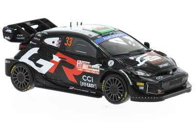 Model IXO MODELS RAM965 představuje detailní zmenšeninu soutěžního vozu Toyota GR Yaris Rally1 Hybrid #3